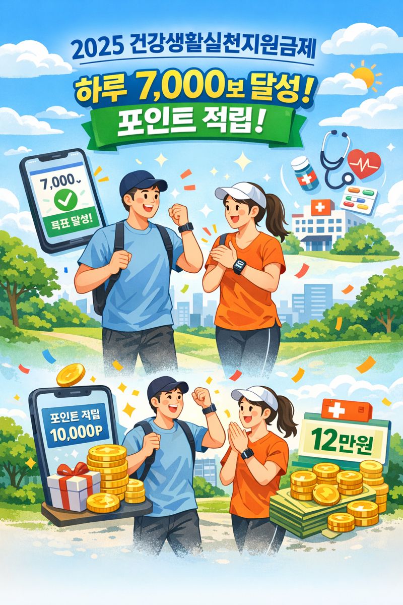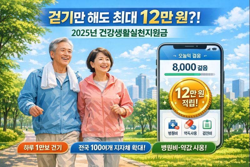 2025년 걷기만 해도 연 최대 12만원 포인트 지급! 국민건강보험의 건강생활실천지원금제는 스마트폰 걸음 수 연동으로 간편 신청 가능하며, 병원비·약값 등 건강 관련 비용에 사용됩니다. 전국 지자체 확대 적용, 신청방법, 참여자격, 포인트 사용처, 주의사항까지 완벽 정리했습니다.