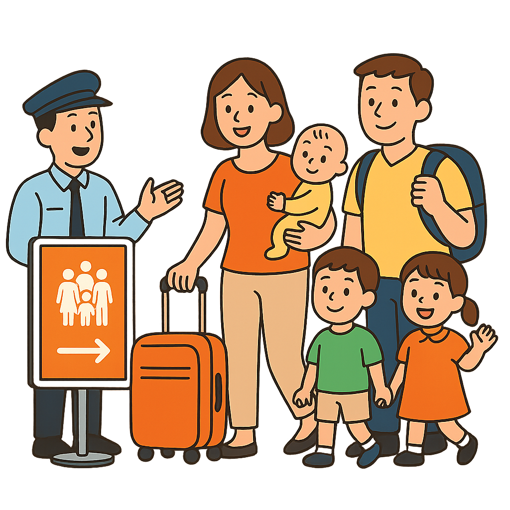 보안검색 절차에서 다자녀 가족이 일반 대기줄보다 빠르게 통과할 수 있는 제도예요.