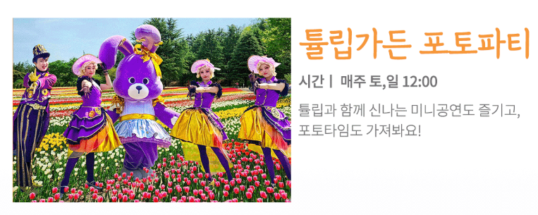 - 튤립가든 포토파티: SNS 인증샷 이벤트로, 추첨을 통해 다양한 선물을 제공합니다.