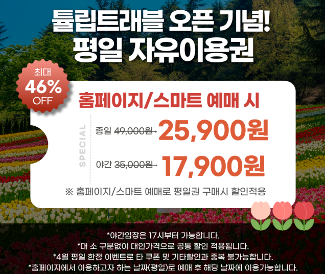 - 주말 방문 시 오전 일찍 도착하면 한적한 분위기에서 튤립 관람 가능
