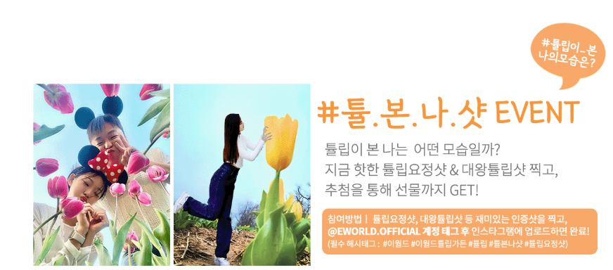 올해 이월드는 개장 29주년을 맞아 ‘DREAMS COME TRUE’라는 슬로건 아래 '튤립 트래블(Tulip Travel)'을 개최하고 있습니다. 2천 평 규모의 대형 튤립가든은 물론, 이월드 전역에 걸쳐 10여 종의 튤립이 형형색색 만개해 마치 유럽의 봄 정원을 연상케 합니다.