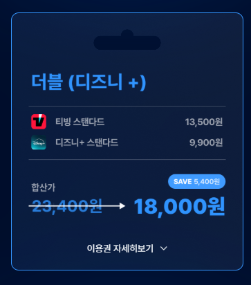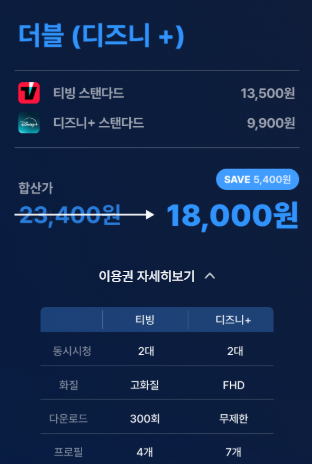 3. 더블팩: 디즈니+ + 티빙만 보는 조합