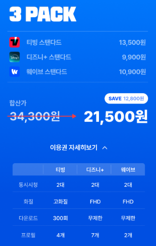 - 3PACK (티빙 + 디즈니+ + 웨이브)