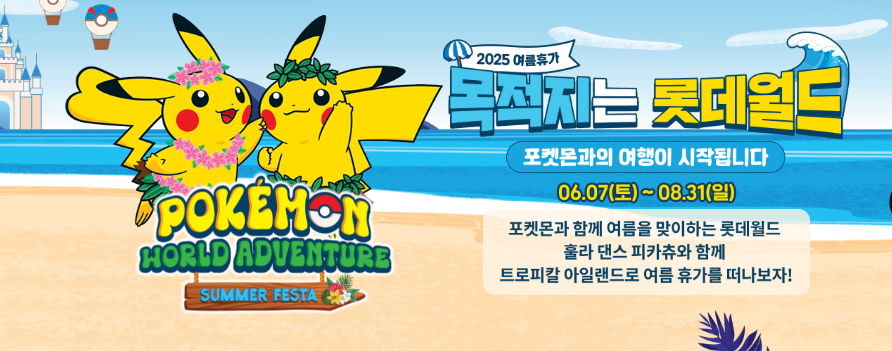 2025 롯데월드 썸머 페스타에서 포켓몬과 함께하는 여름 여행! 피카츄 훌라댄스, 삼바 카니발 퍼레이드, 한정판 굿즈, 할인 혜택까지 총정리했습니다.