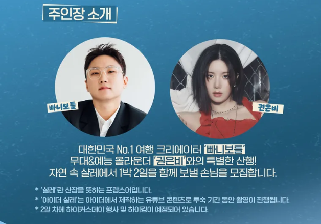 여행은 단순한 이동이 아닌 사람과 경험, 기록이 함께하는 과정일 때 더욱 큰 의미를 가집니다. 이번 아이더 샬레 시즌2 영덕편은 바로 그 본질을 담아낸 프로그램으로, 참가자들에게 오래도록 기억에 남을 특별한 추억을 선사할 것입니다. 빠니보틀, 권은비와 함께하는 단 하루의 기회를 놓치지 마시기 바랍니다.
