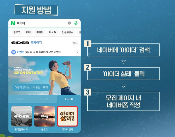 A. 네이버에서 ‘아이더 샬레’를 검색한 뒤 공식 참여 페이지를 통해 지원 가능합니다.