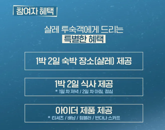 - 전 일정 숙식 지원: 참가자 비용 부담 없이 올인클루시브 형태로 진행