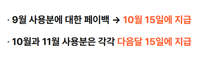 - 10월 사용분 → 11월 중순경 지급