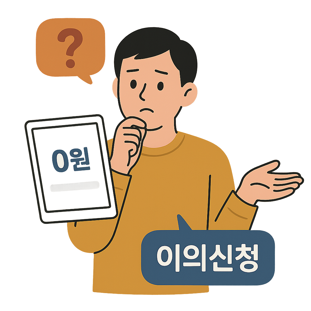 혹시 금액이 0원이 뜬다면? 이의신청도 가능해요