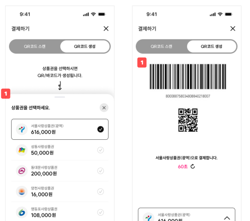 - 바코드 제시 (CPM): 내 휴대폰의 바코드를 점원에게 보여주어 리더기로 찍는 방식입니다. 편의점, 대형 가맹점에서 유용합니다.