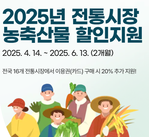 - 4월 14일부터 6월 13일까지, 전통시장 전용카드 충전 시 20% 추가 혜택
