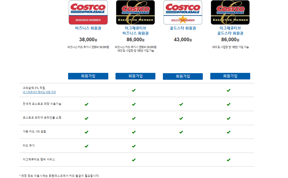 - 사업자 회원(비즈니스): 사업자 등록증이 필요하며 연회비는 38,000원입니다.