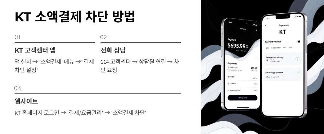 - KT 고객센터 앱 설치 > '소액결제' 메뉴 > '결제 차단 설정'