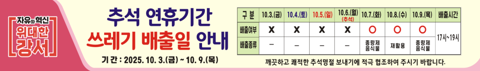 부산 강서구, 추석 연휴기간 쓰레기 배출일 안내