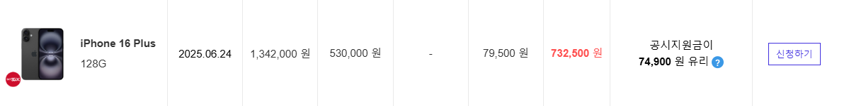 ✅ 1. 아이폰16 플러스 – 공시지원금 최대 55만 원
