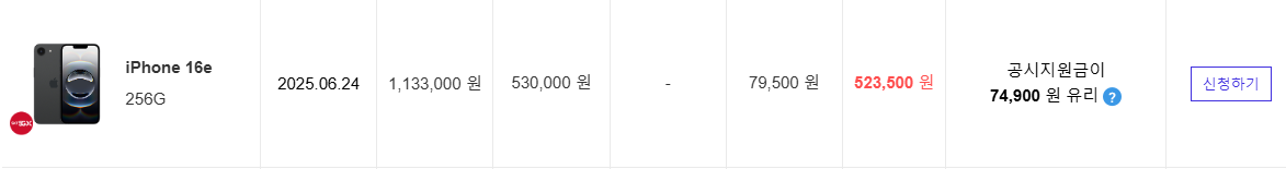 | 아이폰16e | 13.8만원 | 55만원 | 63만2500원 |